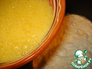 Яйца взбила венчиком и влила в свернувшееся молоко.