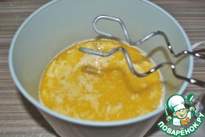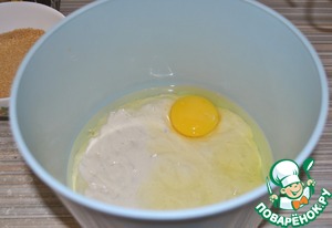 Закваску смешиваем с яйцом и белком. Перемешиваем. -
