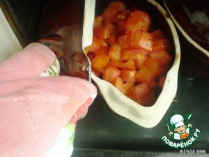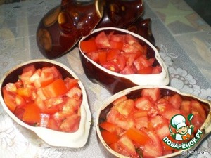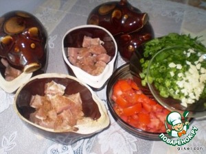 Время приготовления блюда в духовке зависит от ее мощности, тут уж каждый сам! Я проверяю на готовность: вынимаю горшочек, визуально проверяю готовность помидор. Если, на мой взгляд, они готовы, достаю кусочек мяса, протыкаю его ножом....