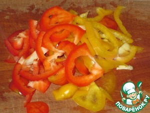 - Перец болгарский (я взяла половинки 2-х разных цветов) — 1 шт