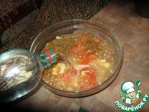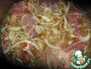 В "кипящую"от пузырьков воды смесьдобавляю мясо и оставляю мариноваться на несколько часов