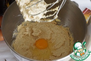 Продолжая взбивать, добавить по одному яйца, после каждого как следует взбивая.