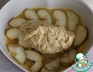 ... вылить в форму, сверху выложить ломтики груш.