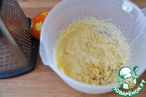 Добавляем цедру и сок половины апельсина, ванилин, перемешиваем.