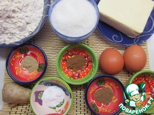 Масло (мягкое, не топить) растереть с сахаром. Добавить яйца и хорошенько вымесить. Добавить гашеную соду, сок имбиря и все промешать.