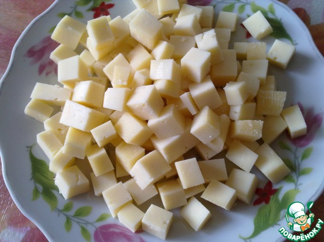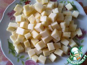 Сыр тоже нарезаем кубиками.