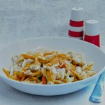 Первый раз готовила эту лапшу, по этому рецепту вышло очень вкусно, хотя сама по себе лапша даже пахнет не очень, спасибо за прекрасный рецепт!