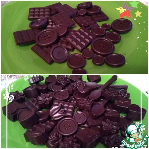 Затем отлить часть массы ( примерно 1/3) и остудить ее до 27 градусов ( поставив емкость в холодную воду). Затем добавить все это в чашку с основной массой и перемешать. Масса должна иметь температуру 30 градусов. Разлить по формам и оставить охлаждаться при комнатной температуре около часа. Затем можно убрать в холодильник минут на 15-20. Достать шоколад из формы.Конечно, повозиться придется, но результат того стоит. Удачи Вам!