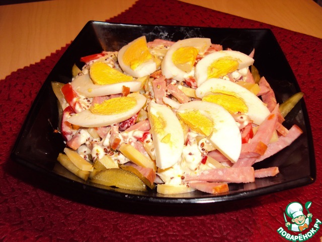 Дорогие поварята, спешу поделиться рецептом вкуснейшего праздничного салата. Салат прост в приготовлении, в нем отлично сочетаются все продукты. Изюминка этого салата - соус. Попробуйте!