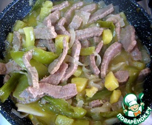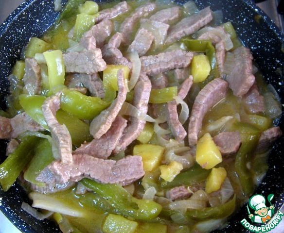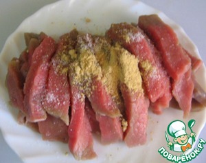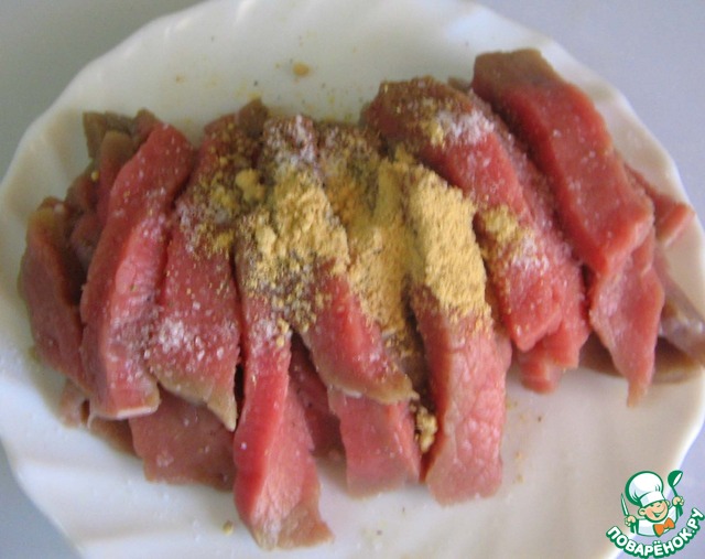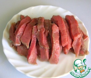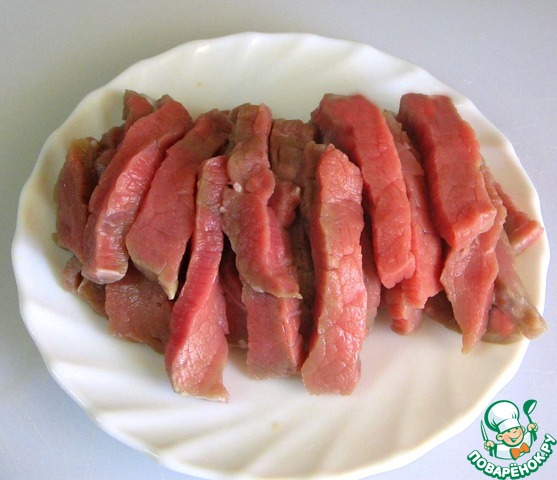 Мясо нарезать полосками.