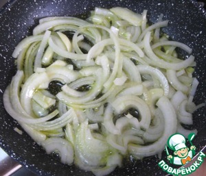 Лук нарезать полукольцами, добавить к чесноку.