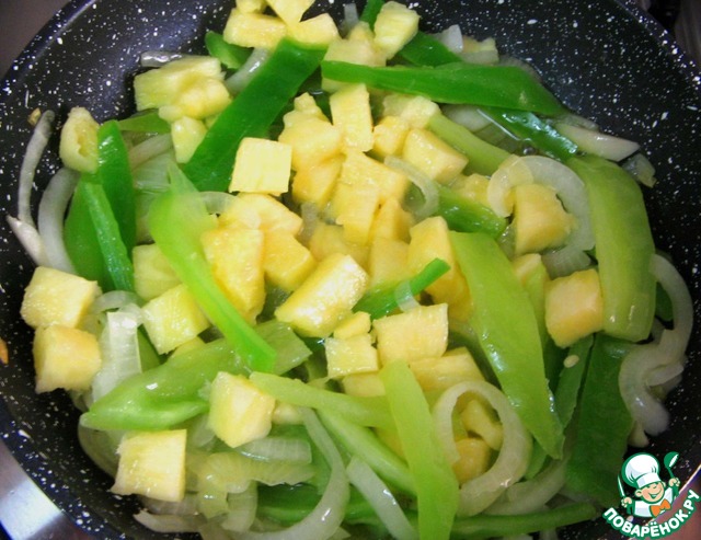 Добавить ананас и прогреть пару минут.
