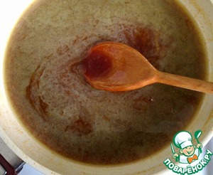 4. Снимите с огня введите маргарин, растворите. -