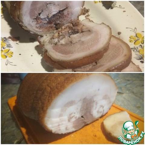 Если вам не нравится свиной рулет, значит вы просто не ели вкусный свиной рулет. Запах при готовке такой, что весь подъезд многоквартирного дома знает что в квартире №24 делают вкуснятину. Перекопав рецепты сайта, я не нашла именно такой способ приготовления как у меня. но если я все-таки проглядела, думаю ничего страшного т. к. САЛА МНОГО НЕ БЫВАЕТ.