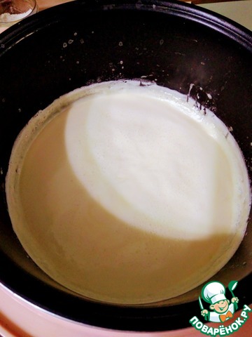 Мешая постепенно добавить молоко. Всё хорошо перемешать. Вылить в чашу мультиварки. Включаем Режим СУП. Постоянно помешиваем, как только закипит, Переключаем на режим ВЫПЕЧКА. Постоянно помешиваем, иначе начнёт пригорать!