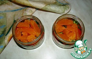 Последним слоем выкладываем очищенные от пленочек филе мандарина