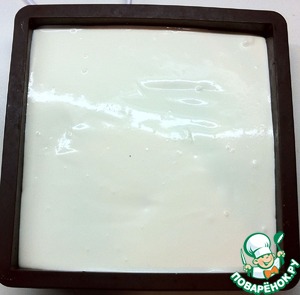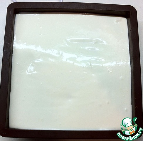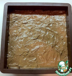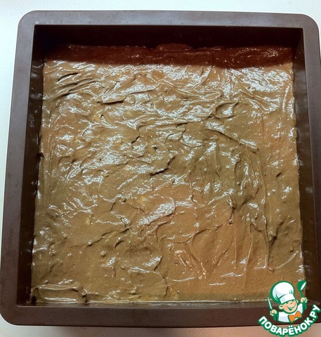 Выложить в форму светлое тесто. У меня форма силиконовая, я её ничем не смазываю. Размер 22*22 см.