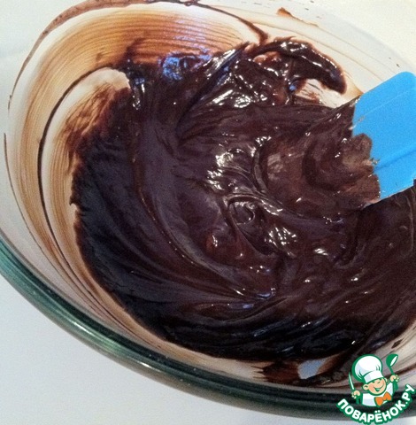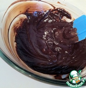Для глазури довести до кипения 50 мл сливок и вылить их на шоколад, наломанный кусочками. Мешать до образования однородной массы.