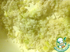Добавляем рис (промытый) и, размешивая его круговыми движениями, чуть-чуть подрумяниваем