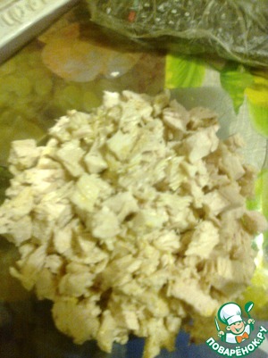 Мелко нарезаем куриное мясо. Я обычно варю суп из грудки - поэтому грудку и нарезаю