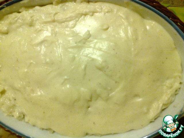 В отдельной кастрюле растапливаем остальное сливочное масло и слегка обжариваем в нем муку. Вливаем тоненькой струйкой молоко (или, кто хочет пожирнее, 10-процентные сливки) и, непрерывно размешивая, доводим до кипения. Добавляем примерно половину сыра и остальную соль (зависит от степени солености сыра) и перец. Варим на слабом огне 5 минут