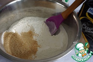 Включить духовку на разогрев до 210 градусов. Смешать муку с сахаром.