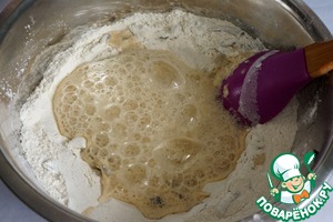 Замесить тесто. Сильно усердствовать не нужно, как только все смешалось, готово.