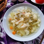 [+4]Побоялась "заглушить" вкус ингредиентов куркумой, поэтому бульон у меня бледный.