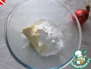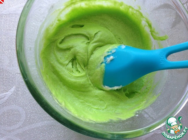 Готовим цветное тесто. Взбиваем размягченное сливочное масло с сахарной пудрой,