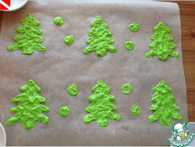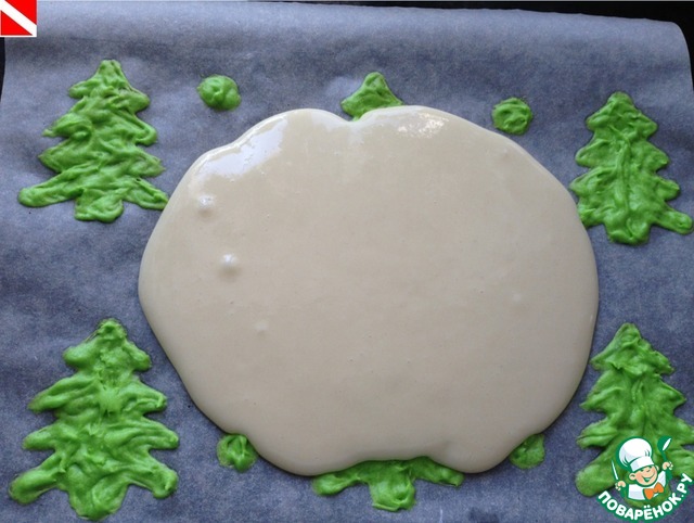На застывшие фигурки наносим часть белого теста и выпекаем при 165 градусах 5-6 минут. Из оставшегося белого и цветного теста также выпекаем несколько коржей.