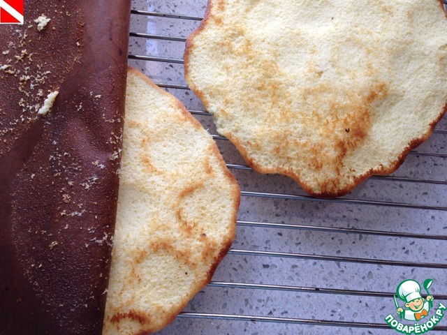 Выпекаем 1 круг размером чуть меньше дна формы (у меня форма 20 см в диаметре), остужаем на решетке. На один корж уходит 2-3 ст. л. теста.