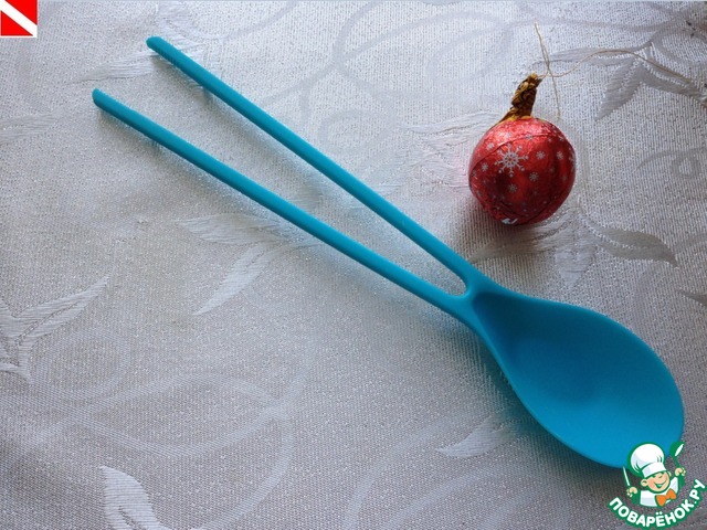 Заодно похвастаюсь своей новой ложкой-палочками. Материал - то ли пластик, то ли силикон, не знаю. Очень удобна для приготовления блюд пан-азиатской кухни.