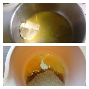 Масло поставить растапливать. Взбить яйца, ванилин и сахар