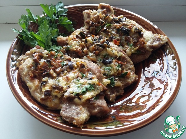 Аппетитнейшие, ароматные, сочные и вкусные отбивные. У меня без грибов, остальное по рецепту.