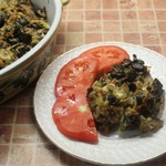 • Даем немного остыть, добавляем 1 ч. л. крахмала, на крупной терке тертый сыр, мелко порубленную петрушку, 1 ст. л. майонеза, перчим, солим (не забываем, что сыр соленый) и перемешиваем