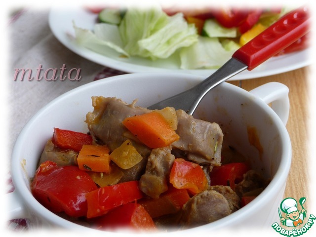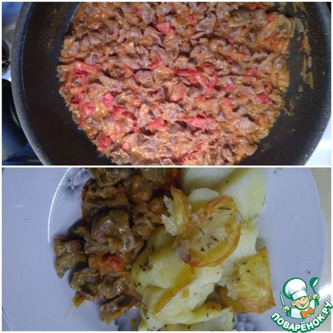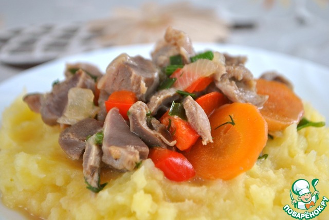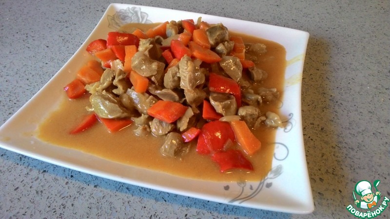 Рецепт «Куриные желудки с овощами в горчичном соусе»: