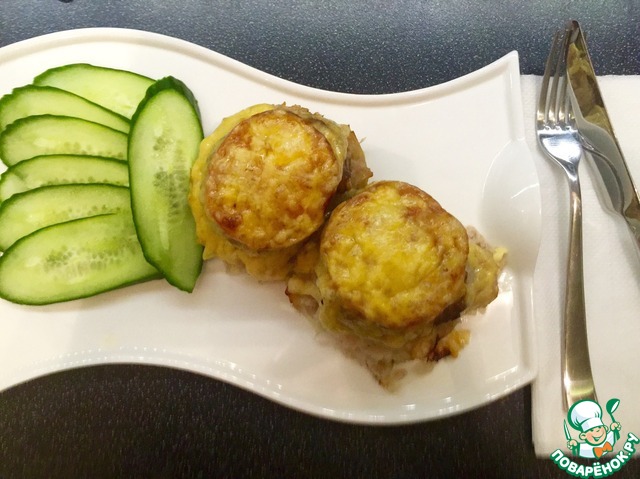 За несколько минут до окончания нужно посыпать тёртым сыром и отправить в духовку для того, чтобы сыр расплавился.