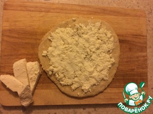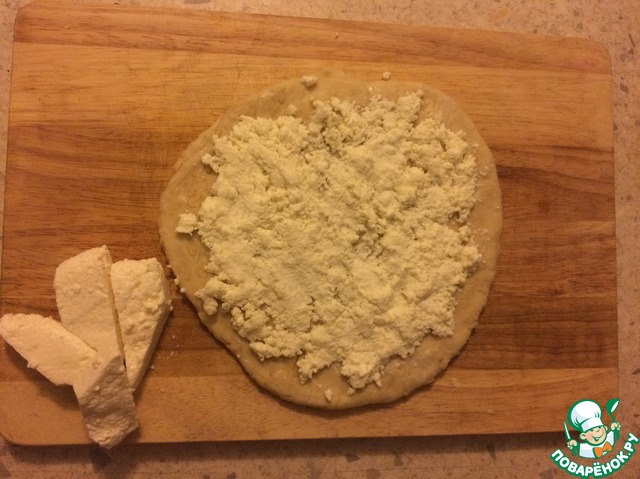 Добавляем сыр и равняем его по всему периметру, оставляя по 2 см от края!