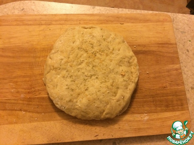 Далее второй слой теста, равняем и боковые "швы"защипываем. Так же по желанию и вкусу можно добавить размарин и сушеный чеснок.