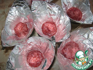 Заполняем кулечки клубничным пюре на половину. Не спешите, если пюре останется, оно может понадобится нам в дальнейшем. Кулечки отправляем в холодильник на 10 минут.