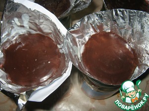 Подушку для своего десерта я делала из молочного шоколада (растопить шоколад и по одной ложке вылить на основания десерта и в холодильник до застывания шоколада). Но мама попробовав десерт, сказала, что здесь лучше б подошла подушка из перетертого бисквитного печенья с маслом