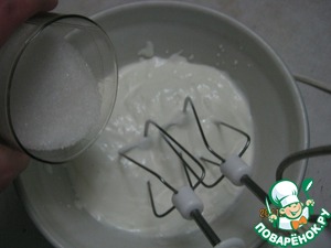 Творог берем пластинчатый и перетираем два раза через дуршлаг до творожной массы. Желатин замачиваем в 50 г воды на 10 минут. Сметану взбиваем с сахаром.