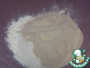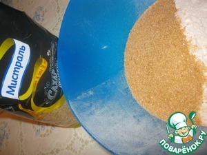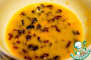 К муке добавить тростниковый сахар, пряности, соду, разрыхлитель, изюм с цедрой и соком. Перемешать, добавить яично-масляную смесь и морковь. -