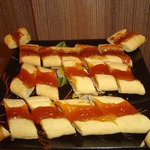 Достаём печенье, сразу режем горячим, иначе потом будет крошиться. Я нарезала наискосок на кусочки около 2 см.