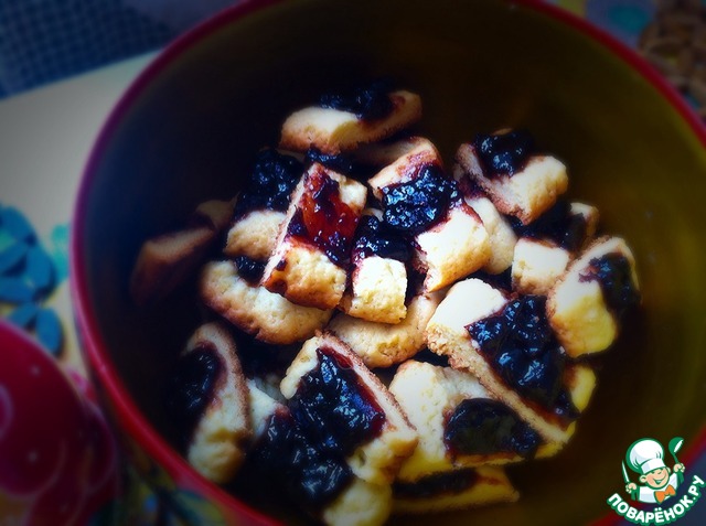 Сегодня наткнулась в интернете на песочное печенье самого обычного рецепта, но выполненного не совсем обычным способом. Мне этот способ понравился тем, что обычно у меня проблемы испечь печенье с джемом: или он вытекает, или нужно класть крахмал, тогда джем слишком густой и не тот вкус. Да и раскладывать джем долго, если печь много. Этот рецепт хочу подарить Никочке-Nika.