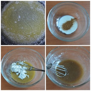 Для глазури: разогреть сковороду, положить сливочное масло, растопить (смотрите, чтобы не подгорело). В мисочку влить молоко, добавить корицу, соль, взбить венчиком, постепенно добавить масло (немного остудить) и взбиваем до однородности. Когда все соединилось понемногу добавляем сахарную пудру, хорошо перемешиваем.