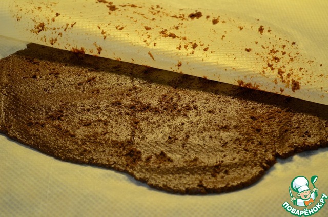 4. Раскатать тесто между двумя пластами пекарской бумаги в пласт высотой 3 мм.