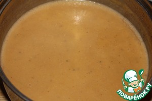 Оставшееся сливочное масло смешать в сковороде с оливковым маслом, добавить пшеничную муку и тщательно прожарить.