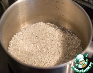 Разрезать ванильный стручок пополам, ножом выскрести содержимое и добавить к рису. Туда же бросить и сам стручок.