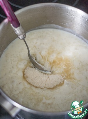 Влить молоко, довести снова до кипения. Проварить пару минут.